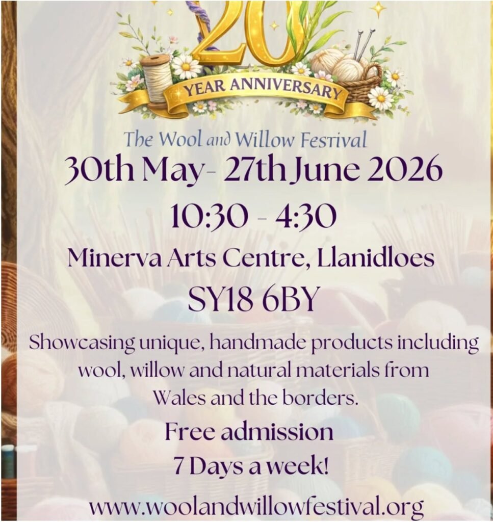 The Wool and Willow Festival is an exciting and highly successful selling event that brings together people from across the country and beyond to share a passion for wool, willow and natural materials. The Festival includes high-quality exhibits all made by specialist producers in Wales and the Border counties. The Festival is open seven days a week and is manned at all times on a rota basis by the exhibitors. It will run for four weeks next year, from the 30th May to the 27th June, 2026.